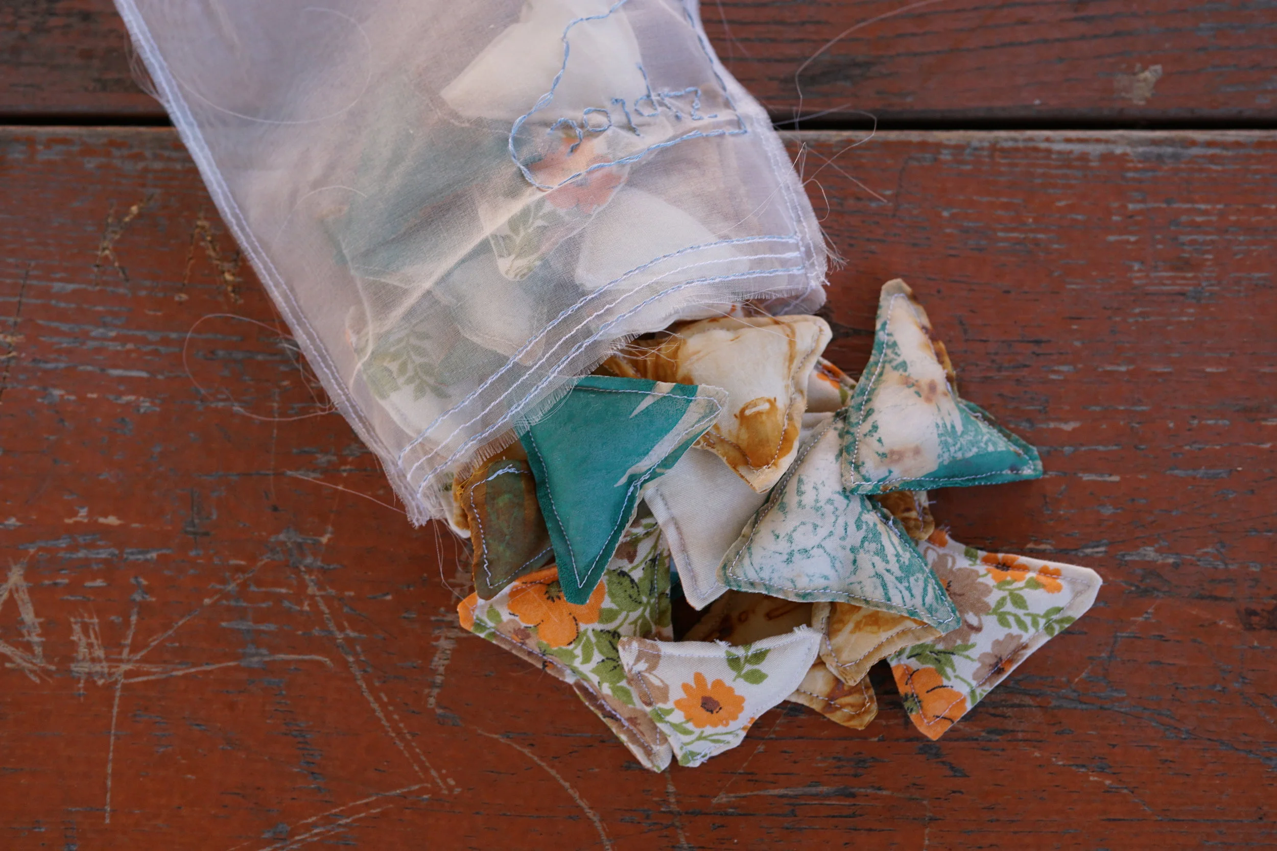 2016. Found handkerchiefs, found table runner, and silk organza.